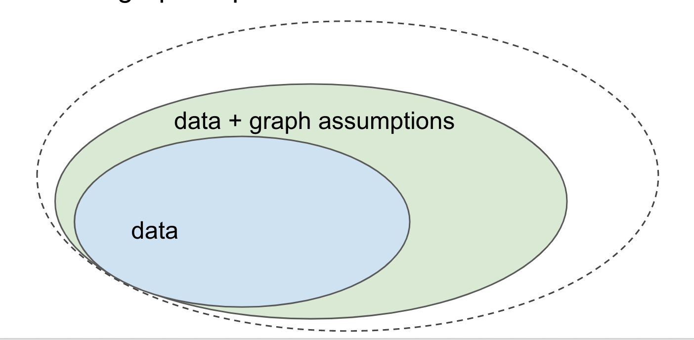 However, we have already seen that some questions cannot be answered using data/joint distribution alone. Notably, if you want to make predictions about how the system you study would behave under certain interventions or perturbations, you typically won't be able to make such infernces based on the data you have. These types of questions lie outside the blue set.
