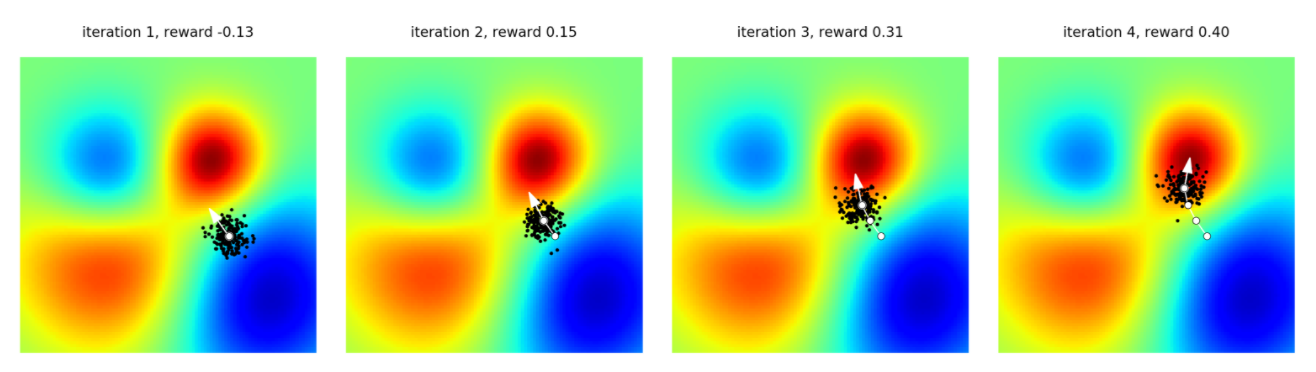 Here is a figure taken from OpenAI's blog post visually illustrating how the method works for optimising a 2D function: