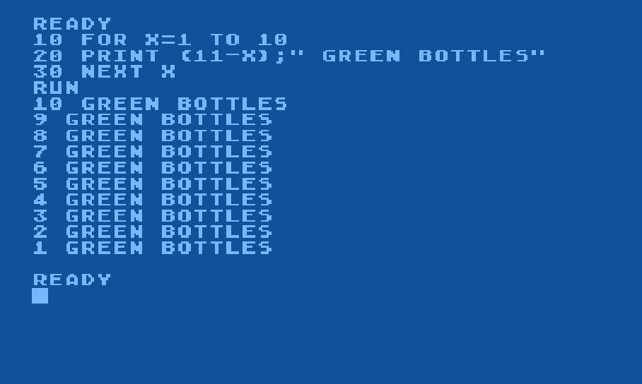Below is a little three line example of a BASIC program, and its output: